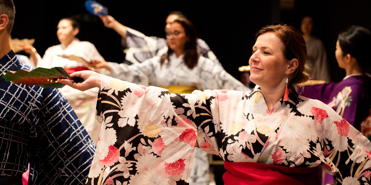 “Nihon buyo” is a type of traditional Japanese dance characterized by uniquely Japanese qualities of elegance and grace. You can wear a Yukata, a casual Kimono, and learn how to dance. You will also enjoy watching a professional dancer perform “Fujimusume [Wisteria Maiden]” etc., for which is the authentic and well-known Japanese dancing number.